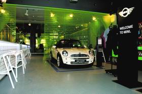 Дело в том, что здесь, что называется, в одном флаконе объединены модное молодежное кафе-клуб и шоу-рум автомобилей MINI. «Кафе MINI», пропагандирующие стиль жизни поклонников модной автомобильной марки, можно найти в Мадриде, Париже, Мюнхене, Лондоне и Сингапуре. Впрочем, новое петербургское заведение не является копией уже существующих и, несмотря на сертификацию интерьера по стандартам BMW group, отличается оригинальным дизайном.