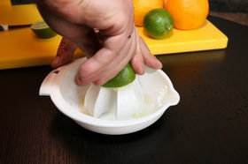 Разрезать лайм пополам, выжать сок. Отмерить 15 мл, налить в шампанское блюдце.