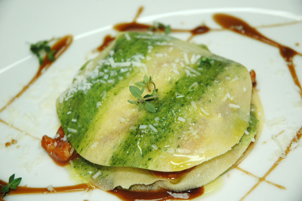 Равиолло — традиционное итальянское блюдо, которое у нас чаще всего ассоциируют с пельменями. Да, для него тоже готовится тесто (но совсем другое, не пельменное!), а уж варианты начинок вряд ли можно сосчитать — настолько они разнообразны! Для нашего журнала Альфонсо приготовил Открытый равиолло из двухцветного теста — одним традиционным, с добавлением яиц, другим со шпинатом — с собственным вариантом начинки.