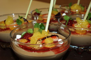 Приготовить мусс Гуанара. Замочить желатин в холодной воде. Растопить шоколад. Молоко довести до кипения и разбавить размельченный желатин. Влить третью часть горячего молока для образования эмульсии. Постепенно добавить оставшееся горячее молоко и банановое пюре для сохранения текстуры эмульсии. Получившееся пюре добавить в растопленный шоколад, пробить блендером – очень аккуратно, на маленькой скорости, чтобы не насытить массу воздухом. При температуре 35-40оС добавить нежнее взбитые сливки.