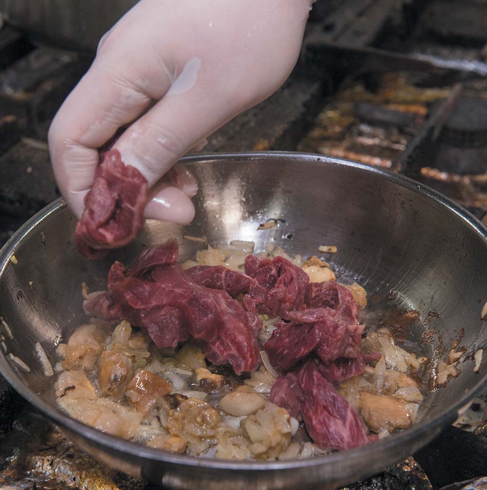 Я рекомендую для блюда брать именно вырезку говядины. Главное — не пережаривать мясо.