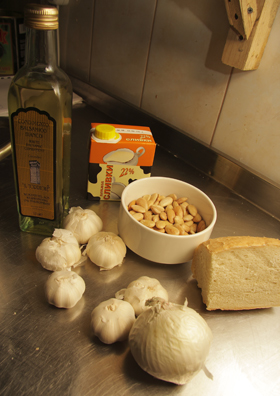 1. Чеснок целыми головками запечь в течение 25-30 минут при температуре 180оС. Он запекается для того, чтобы выпарились эфирные масла, создающие остроту, а сам чеснок приобрел ореховый привкус, которые еще усилится миндалем.