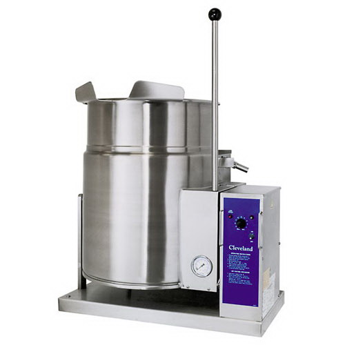 Также большое количество кипятка используется при замачивании и солении овощей, чеснока, черемши. Без солений невозможно представить хороший стол в украинской кухне. Использование высокопроизводительного технологического оборудования должно быть обусловлено необходимостью приготовления нужного количества блюд из меню, так как закупка данного оборудования должна быть экономически оправдана. Котлы могут быть на 60, 100, 200 л и так далее, можно приобрести котел с мешалкой и множеством дополнительных функций, упрощающих эксплуатацию. Вариант KET-12-T+VOK1+ST28 фирмы Cleveland удобен тем, что обогрев котла косвенный (продукт не пригорает), есть рычаг для переворачивания котла.