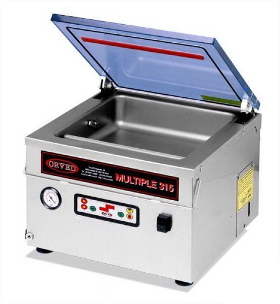 Для распределения нагрузки на производство и осуществления плана заготовок, а также при необходимости заготавливать продукты и полуфабрикаты для других доготовочных цехов или предприятий широко используется процесс вакуумирования и охлаждения. Вакуумная машина с объемной камерой и мощной помпой позволяет вакуумировать много заготовок и хранить их в разы дольше без опасения бактериального заражения. Для такой машины можно закупить необходимое количество полиамидной или полиэтиленовой упаковки. Самая прогрессивная технология на данный момент – приготовление мяса, завакуумированного при температуре 100оС или ниже в пароконвектомате в режиме «пар». Данная технология позволяет приготовить мясо без потери сока и ценных качеств продукта. Вакуумированное мясо в холодильной камере может храниться до недели. Основной поставщик вакуумных машин фирма Orved из Италии. Модельный ряд весьма разнообразен, наиболее популярные модели – Multiple 315 VM, VM 18 Digital.