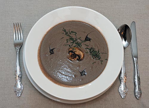 Svampsoppa — традиционный шведский крем-суп — готовится из боровиков. Но то, что хорошо в домашней кухне, для ресторана не всегда пригодно: слишком уж высока была бы себестоимость такого супа. Иннокентий решил заменить боровики на шампиньоны, доведя суп до вкуса при помощи сухих грибов и приправ.
