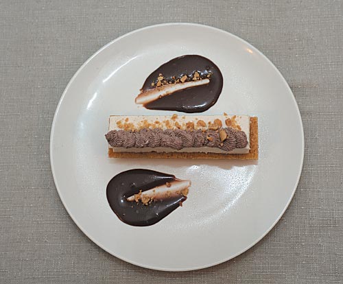 Охладить, нарезать полосками чуть больше парфе. Уложить парфе на коржи.