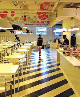 — В своей работе мы пытаемся создать прежде всего эмоциональный образ. Это соединение мерчандайзинга и кулинарного дизайна с лучшими вкусовыми качествами блюд и напитков. Основой является принцип total look — создание законченного стильного образа из сочетающихся блюд и напитков. Это и есть наше выверенное решение организации зоны реализации блюд и напитков по принципу free flow. Все наименования блюд и напитков должны быть хорошо видны, удобно представлены на различных «островах», должны, по сути дела, продавать сами себя. Свежие наименования, красивые, аккуратные ценники и понятная система индикации — чтобы у гостя не возникало вопросов. Все должно быть хорошо понятно и видно. Что касается безопасности, то это для нас — задача номер один! Все объемно-планировочные и конструкторские решения помещений предусматривают поточность технологических процессов.