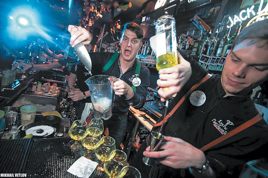 С другой стороны медали — вся остальная работа, которая у нас связана большей частью с развлечениями. Ведь у нас бар, и люди должны улыбаться! Когда гость приходит к нам, он должен видеть, что сотрудник — такой же человек, у него глаза горят, он свободный, он улыбчивый не потому, что его заставили улыбаться, а потому что ему действительно весело и приятно здесь находиться.