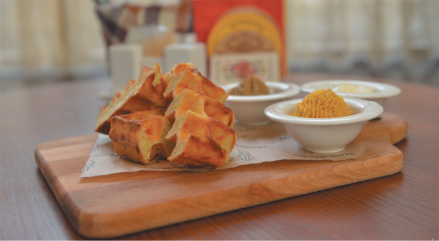 Молоко смешать с растопленным сливочным маслом, добавить соль, яйцо, тёртый варёный картофель, тёртый сыр пармезан, вмешать муку. Замесить тесто, дать постоять полчаса, выпечь в вафельнице при температуре 185 °С 8 минут.