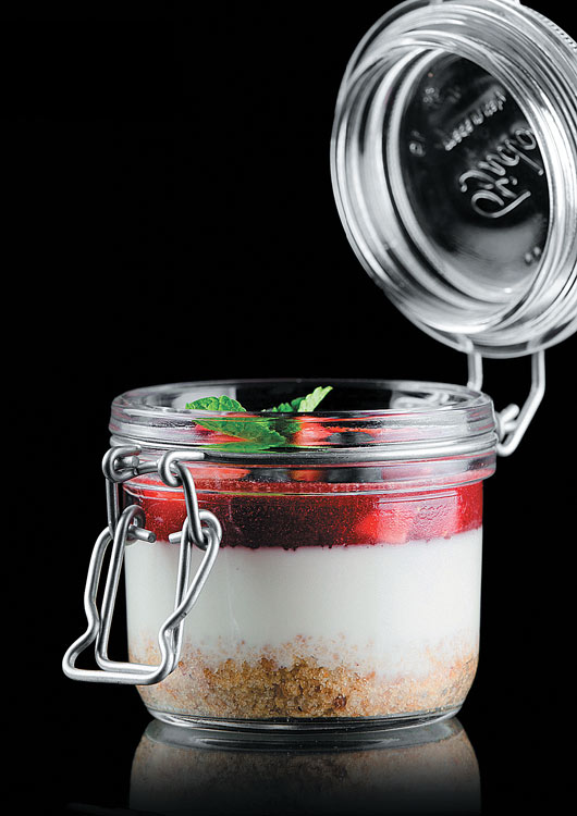 В основе десерта — печенье «Дамские пальчики» в виде крошки, в которое добавляются мелко рублеые фисташки. Сверху десерт поливается ванильным соусом и оформляется свежими ягодами (клубника, голубика). Посыпается тёртыми фисташками, декорируется мятой и двумя меренгами.