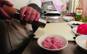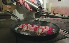 — Это блюдо-импровизация, — рассказывает руководитель службы корпоративного питания футбольного клуба «Зенит» Камо Татевосян. Я люблю импровизировать, живу этим. Оно быстро готовится и смотрится очень эстетично. Хочу подчеркнуть, что даже в горячих блюдах отдаю предпочтение травяному салату, потому что он легкий и вкусный.