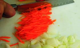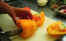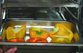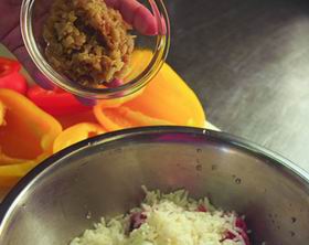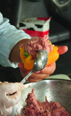 — Это блюдо красивое и вкус- ное! — объясняет она. — Но на самом деле было трудно остановиться на чем-то одном. Очень хотелось приготовить студень — он тоже красиво смотрится на тарелке. Но студень только варится 9 часов! А потом начинается процедура разбирания мяса, заливания его бульоном, остывания — это еще 9-10 часов. Думала о цыпленке табака, но потом решила, что август — это сезон перца, поэтому фаршированные перчики — сезонное блюдо!