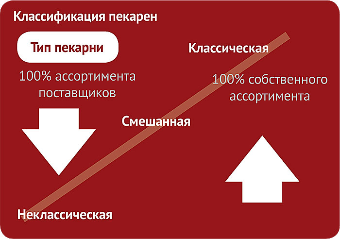Каждое место диктует предпринимателю свой ассортимент, свою ценовую политику и свои особенности продажи — и только исходя из этого нужно строить технологический процесс выпечки. Но прежде чем говорить о местоположении, я расскажу о классификации пекарен, чтобы предприниматель мог понять, чем они различаются. В целом, пекарня может быть трёх типов.