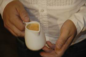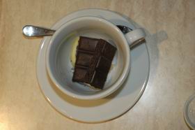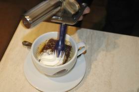 3. Положить в капучинницу черный пористый шоколад.