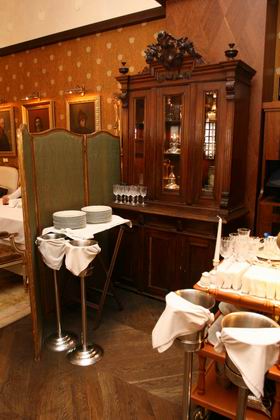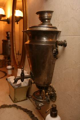 Еще один петербургский ресторан — «Демидов» — может похвалиться старинным фарфоровым действующим камином, а также гравюрами с видами старого Петербурга. Очень дорог дизайн и ресторана «Русская рюмочная № 1». В его интерьере используются антикварные буфеты, венские стулья и эксклюзивный предмет обстановки обеденного зала — старинный стол, который раздвигается и при необходимости может вместить до 40 человек.