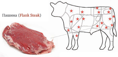 Иногда его называют покромкой. Это двигательная часть мышцы, но ее можно жарить как стейк. Выход этого отруба также 95%. В США этот отруб очень популярен в домашней кухне – он у нас называется Лондонским. Но в ресторане тоже очень удобно его использовать: стоит этот отруб столько же, сколько и тонкий край, и кусок фактически без отходов.
