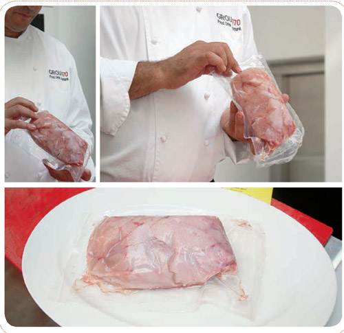 К нам она всегда поступает в замороженном виде весом примерно 5,5 кг, и мы ее по потребности размораживаем. Размораживать ее нужно правильно: сначала вымочить в воде с добавлением уксуса и лаврового листа. При этом в воду нужно добавить лед, потом ее нагреть (вместе с мясом), но как только она начнет закипать – тут же выключить. Это необходимо для того, чтобы удалить мембрану. Когда вода нагревается, мембрана потом легко снимается. Но продукт ни в коем случае нельзя кипятить!