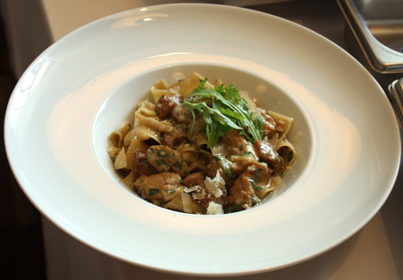 Это блюдо с белыми грибами. Закупает их Николай в Финляндии, в замороженном виде: в России он не находит грибы того качества, которое требуется для ресторана.