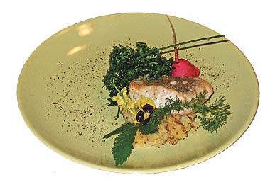 Это блюдо интересно применением технологии панировки рыбы — она очень необычна — и сочетанием продуктов.