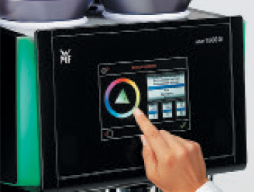 Первое, на что сразу обращаешь внимание, — это революционно новый сенсорный дисплей, который по простоте и удобству не уступает всеми любимому в наше время планшету. Он даёт возможность не только запрограммировать до 48 видов напитков, загрузив к каждому напитку своё изображение, но и предоставляет дополнительную площадь под рекламу.