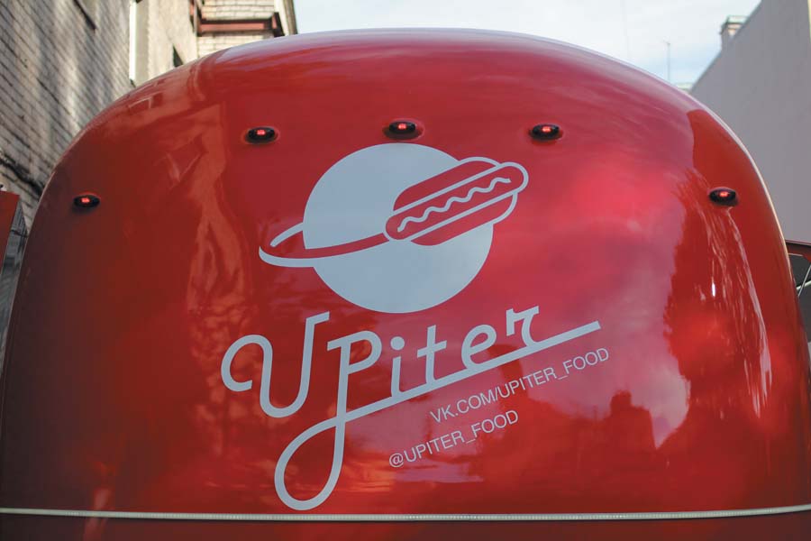 — Дизайн фудтрака оригинальный, рядом с ним постоянно фотографируются наши клиенты. Во многом это и определило концепцию проекта: кафе похоже на космический корабль красного цвета. При этом мы живем в Петербурге и позиционируем нашу продукцию как еду для молодежи. Поэтому название UPiter родилось само собой: то есть ты —олицетворение родного города, при этом еда еще и космически вкусная. Продолжая тему космоса, мы захотели сделать аппетитными не только сами гамбургеры и хот-доги, но и их названия. Так на свет появились бургеры «Поехали» и «Восход», которые пользуются популярностью утром.