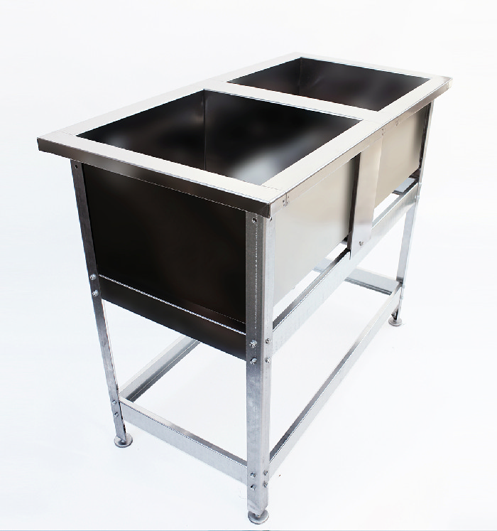 Спросом пользуются ванны с рабочей поверхностью, иными словами, моечная ванна со столом на одном каркасе. Такую ванну можно изготовить и с отверстием для сбора остатков пищи.