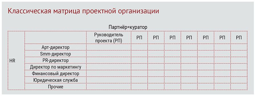 И вместе они создали очень стройную систему управления: иначе руководство разнопрофильными компаниями превращалось в хаос. Ребята совершенно самостоятельно пришли к классической матрице проектной организации.