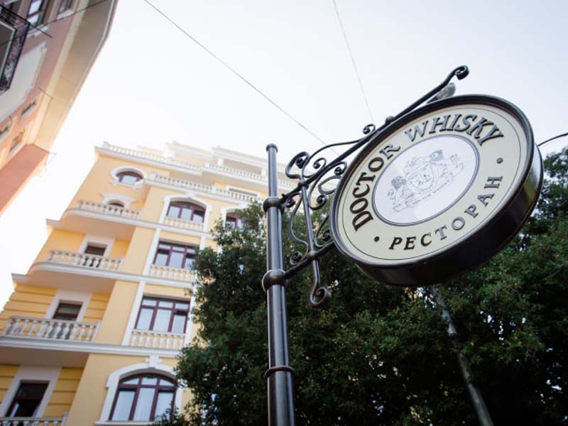 Doctor whisky позиционирует себя рестораном с самой большой коллекцией виски в России. Она включает в себя порядка 400 наименований из семи стран и постоянно пополняется: рестораном занимается бренд-амбассадор этого напитка Эркин Тузмухамедов, за кухню отвечает шеф-повар Андрей Савенков. Кухня шотландская и черноморская, вернее, кухня народов Крыма. Ежемесячно в ресторане проходят гастроли российских и иностранных шеф-поваров, которые готовят блюда из локальных продуктов.