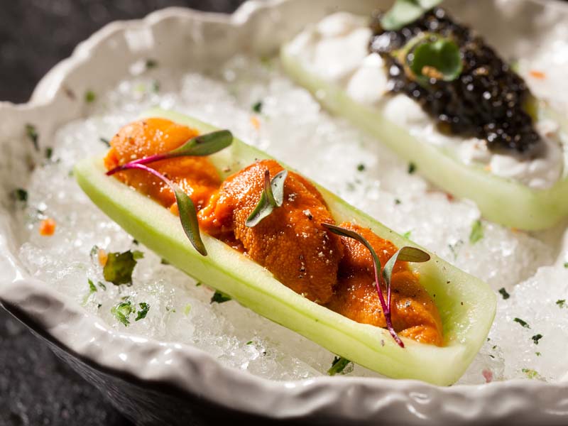 Весной к Евгению приехал его учитель — известный шеф-повар Аарон Скотт, который открывал петербургский «Будда-бар». Аарон будет вновь работать в России, и первое, что он сделал, — авторский сет в UMI OYSTERS.