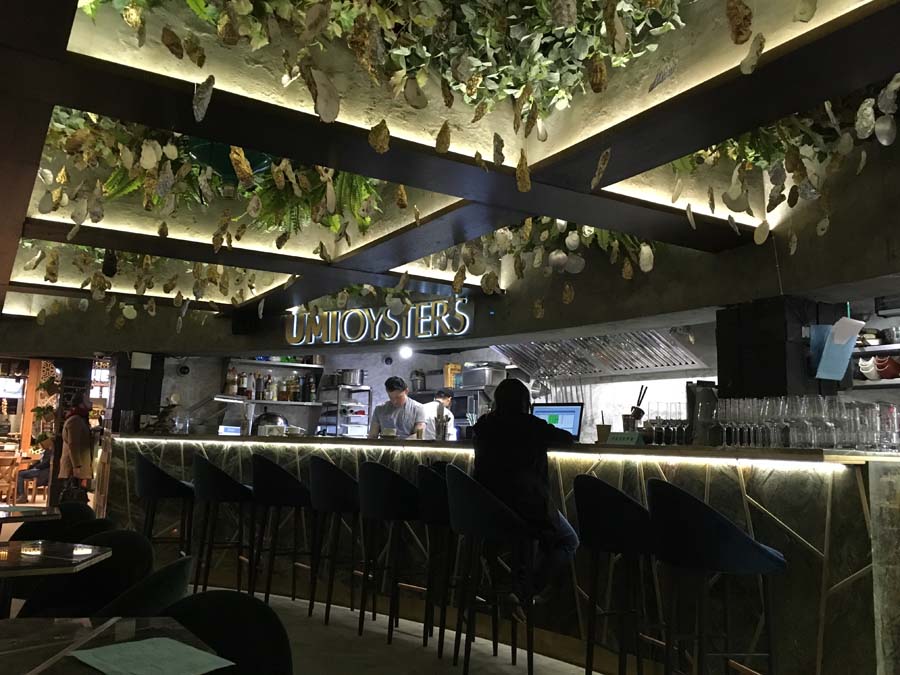 UMI OYSTERS — это, несомненно, ресторан и столь же несомненно — фаст-фуд, быстрое питание: как рассказывает бренд-шеф, самое большое ожидание гостя, какое здесь может быть, — 20 минут во время «запары».