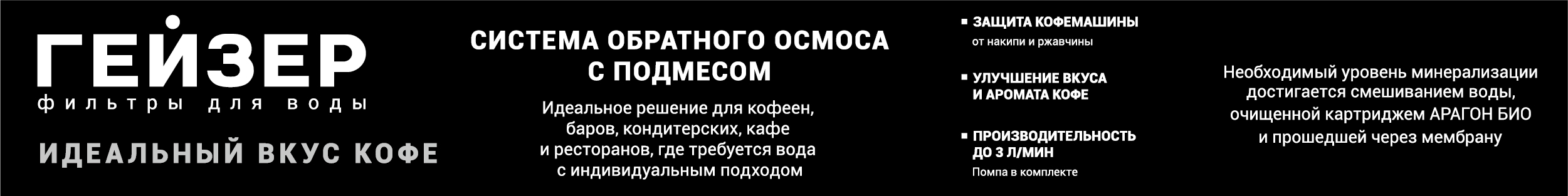 Одним из условий отличного результата является грамотная водоподготовка для оборудования, на котором готовятся горячие блюда и напитки. Известно, что разное по функционалу оборудование – кофемашина, пароконвектомат, посудомоечная машина или льдогенератор – требует определенных, четко выверенных параметров используемой воды. Общий магистральный фильтр, к сожалению, не позволяет получить нужный результат. Добиться его можно только при таком проектировании системы водоподготовки, где требования к воде будут учтены индивидуально для каждого определённого типа оборудования.