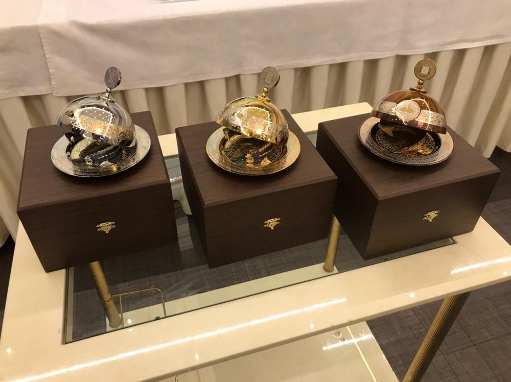 На пресс-конференции, в ресторане «Палкинъ», уже были презентованы кубки победителей. Они выполнены в виде тарелки, на которой находится символ петербургской кухни – стерлядь в шампанском: золотой, серебряный и бронзовый кубки. Такие же призы получат и юниоры.