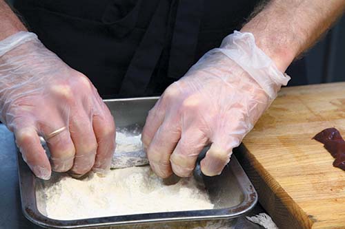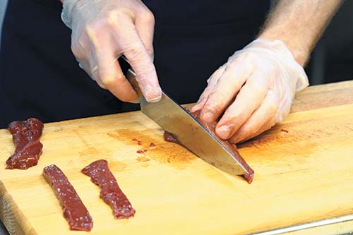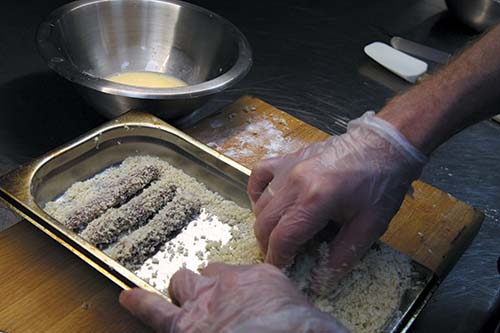 Печень необходимо заранее порезать на полоски размером 2 на 7 см. На сутки погрузить кусочки печени в фермерскую ряженку.