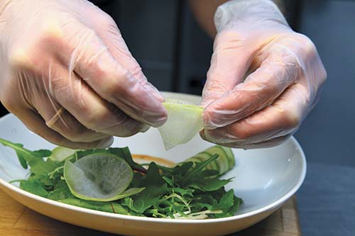 А также: маргеланская редька, белый маринованный дайкон, соль, черный перец, оливковое масло, черный кунжут.