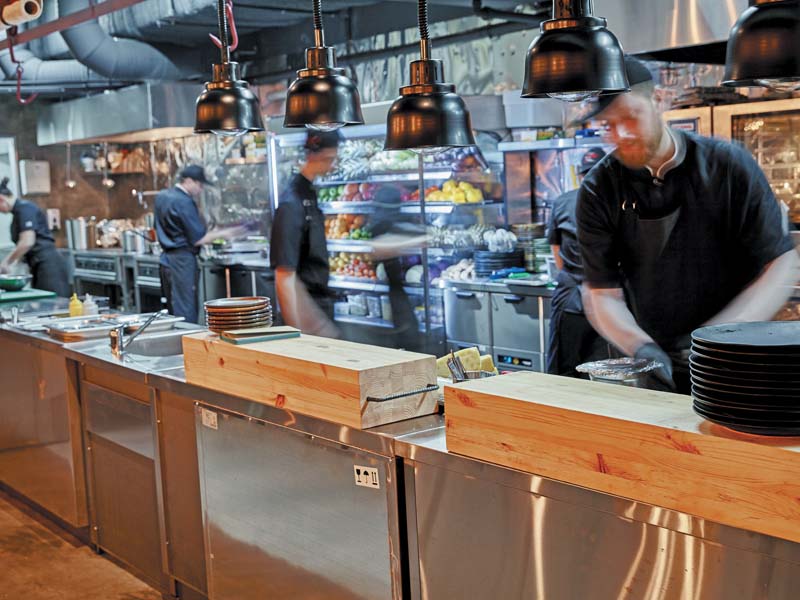 Один и тот же метод приготовления и одни и те же продукты — но в результате гостям можно предложить достаточно разнообразные блюда. При этом в заведении полностью открытая кухня: гриль, холодный цех, чурраско — блюда везде готовятся на глазах у гостей.