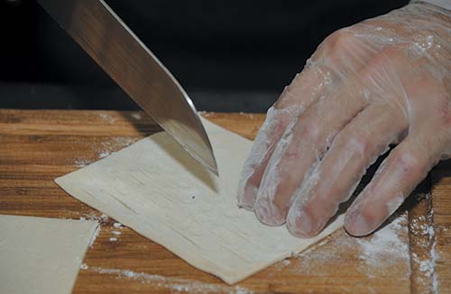 8. Готовый конверт выложить на лист слоеного теста и свернуть.