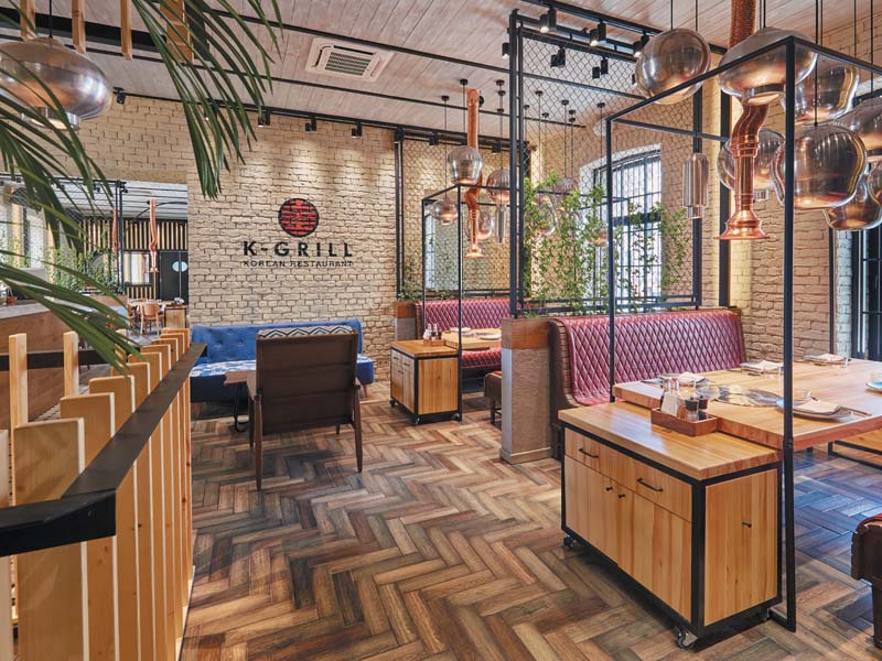 — Да, корейский ресторан K‑GRILL — с грилями, с жаровнями на столах, — и мясной Castle Dish. Давайте начнём с K‑GRILL. Мои наблюдения за корейскими ресторанами в Москве вылились в определение их некой классификации. Одни из них открываются для южных корейских корпораций, и туда ходят корейцы из этих корпораций и люди, которые с ними работают. Как правило, такие заведения почти не адаптируются, там всё достаточно традиционно — а ля «аутентично», хотя, на мой взгляд, говоря об аутентичности, их основатели всё же несколько лукавят. Другая категория — северокорейские рестораны, которые, впрочем, тоже находятся вблизи посольств и других корейских представительств. И, наконец, в Москве живут русские корейцы, у которых тоже есть свои заведения: там всё достаточно аскетично, с простым дизайном.