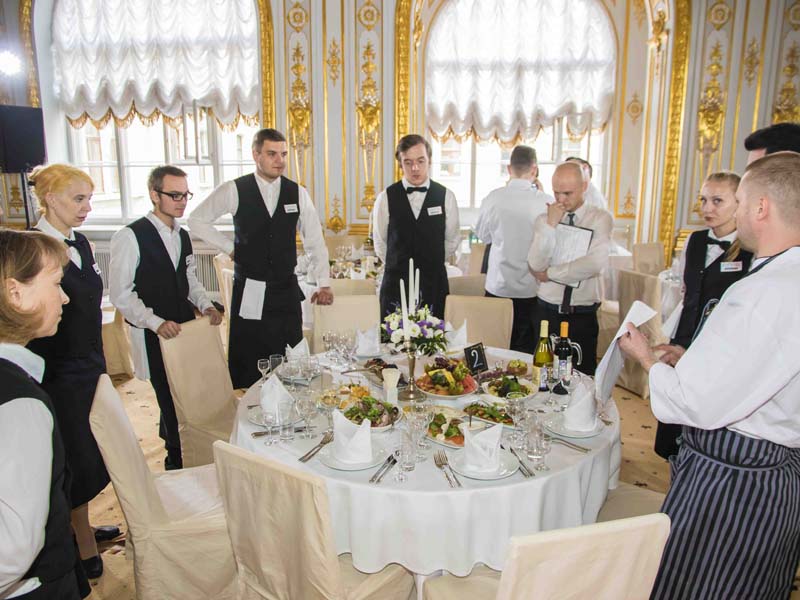 — Вообще, кейтеринг участвует в этом. Эту услугу в основном заказывают компании, которые ведут мероприятие целиком, — ивент-агентства, организации, которые проводят фестивали, форумы, выставки. Теоретически атмосфера у них уже продумана. Но если они это не продумали, то мы рекомендуем, где можно поставить цветы, где — повесить какие-то картины, а где — просто украсить шариками. Также это работа нашего персонала, который должен создать праздник. От их настроения в том числе зависит атмосфера события.