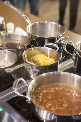 «Теоретическая проработка заняла много времени, мы уделили ей достаточно внимания. К сожалению, не могу сказать того же о практической стороне вопроса, — рассказывает Артур Овчинников. — Одиннадцать месяцев собирались и обрабатывались идеи. До конкурса дошли только 10 % из них, поменялось почти всё. Практические отработки мы делали в поместье Кыуэ, под Таллином. Исполняли всё на кухне ресторана в тот момент, когда не было основной работы. Так как со стороны спонсоров мы не нашли поддержки и понимания, на тренировки уходили почти все свободные средства. В основном нам помогали только Asti Group и лично Наринэ Багманян, а также Сергей Ерошенко, — президент Bocuse d’or Russia, шеф-повар и владелец ресторанов «Честная кухня» и «Федя, дичь!». В течение четырех месяцев я был без работы, и средств не хватало еще больше. Мы рассчитывали провести не менее 30 тренировок на продукте, но всех финансов хватило только на 6 полных тренировок. Сразу, как только появилась возможность получить из Венгрии сырьё, которое будем использовать на выступлении, я сел в машину и привёз из Будапешта оригинальную оленину и стерлядь. И мясо очень отличалось от того, с чего мы начинали… Фактически, у команды не было отработано все до автоматизма»
