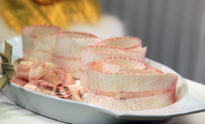 Сначала снимают стружки со спинки и брюшка. Это самые лакомые кусочки, потому что в них больше всего жира и питательных веществ, которые так необходимы в мороз. Стружки полукольцами укладывают аккуратной горкой на тарелку.